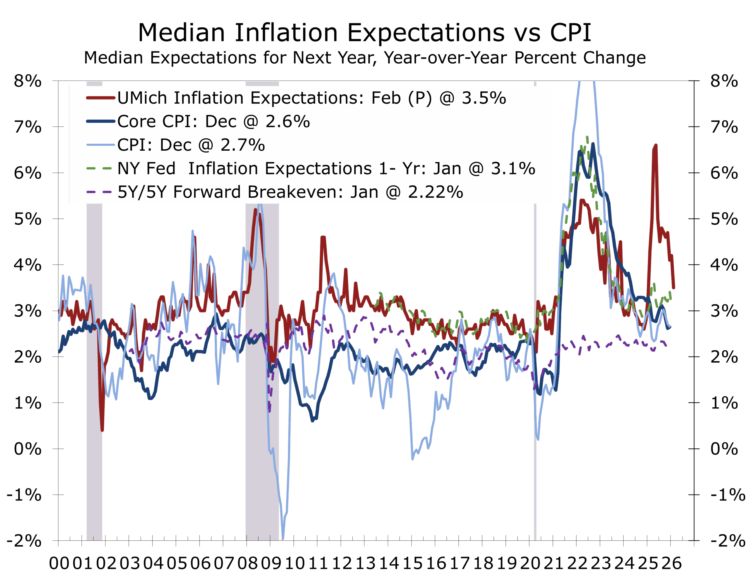 - Consumer inflation expectations continued to ease across multiple surveys.