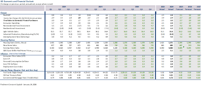 The January FOMC meeting is expected to result in no change in policy rates; the focus will be on language, particularly whether the Committee acknowledges that policy uncertainty and geopolitical risk are tightening financial conditions at the margin. Durable goods orders and jobless claims should confirm ongoing expansion rather than alter the outlook. With fundamentals broadly stable, markets remain vulnerable to headline-driven volatility. On the policy front, the fatal shooting of a Minneapolis resident by federal immigration agents has intensified partisan opposition to the Department of Homeland Security funding bill, with Senate Democrats vowing to oppose the measure absent substantive reforms—raising the prospect of a partial government shutdown as early as the end of this week and injecting a new political risk premium into markets.
