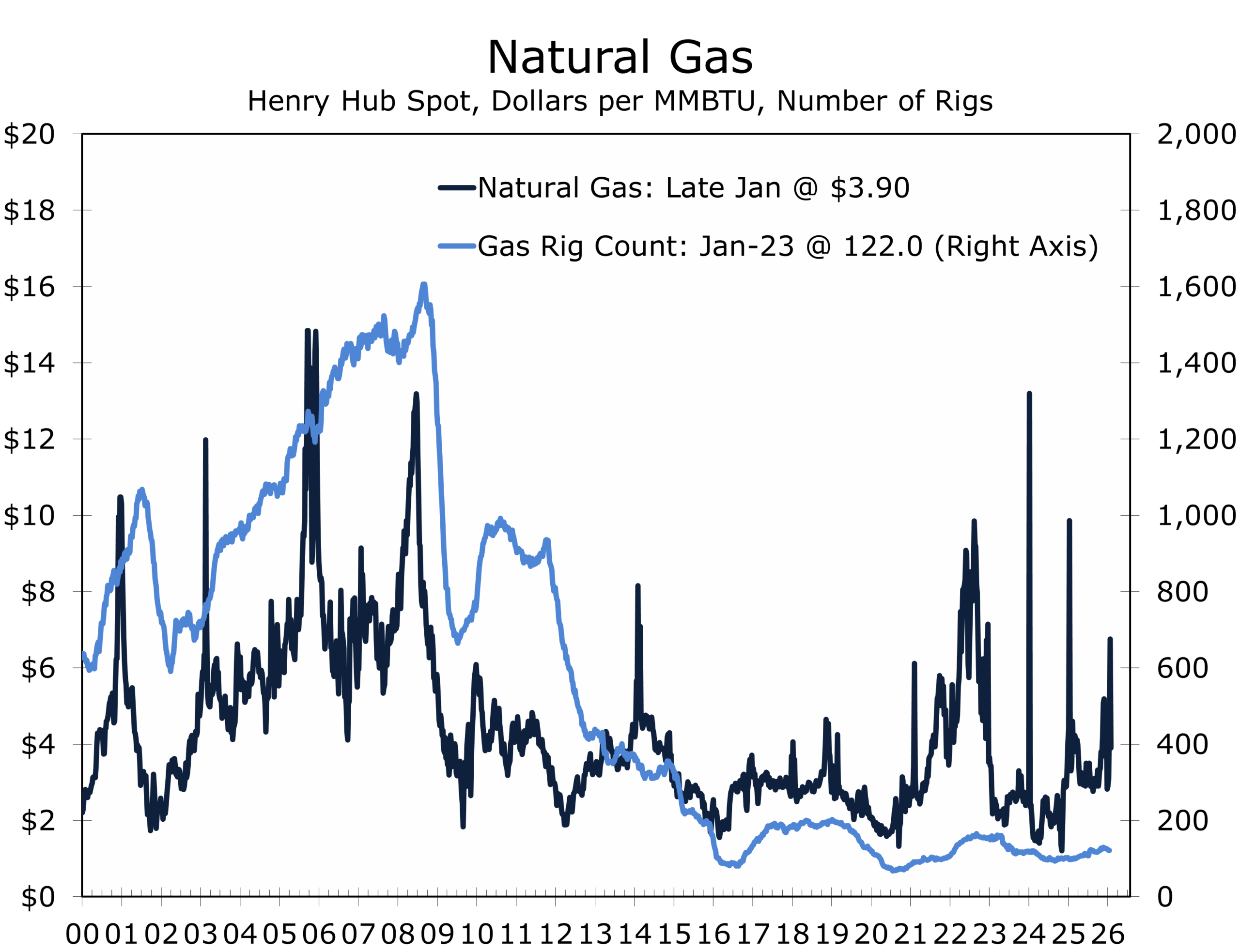 Looking ahead, the balance of evidence suggests that the recent spike in natural gas prices is likely to prove acute rather than prolonged. As temperatures normalize, production recovers, and storage draws moderate, spot prices should retrace some of their gains. However, the episode reinforces a more structural shift: U.S. gas markets are now tightly linked to global conditions through LNG exports, leaving prices more exposed to weather shocks, infrastructure constraints, and geopolitical spillovers than in prior cycles.
