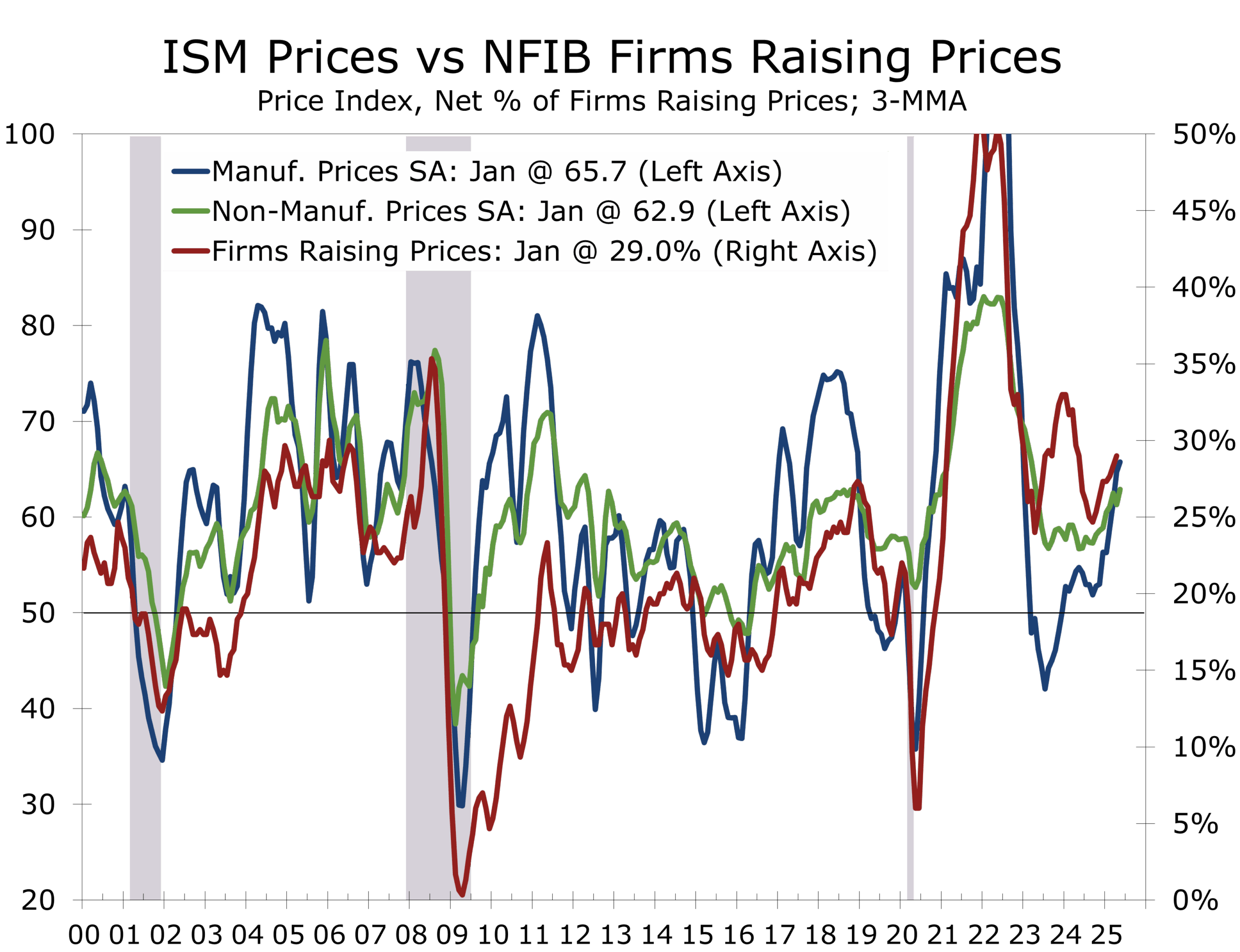 While the unemployment rate was unchanged, the household survey was weaker than that headline would suggest. The labor force participation rate fell 0.2 points, and the employment-population ratio fell 0.3 points. Prime-age participation also slipped, suggesting some job seekers may have left the work force. Tightening immigration is also likely playing a role. The employment data are volatile, but the weakening trend is becoming harder to dismiss. Jobless claims have climbed in recent weeks, and the four-week moving average now stands at its highest level since October.