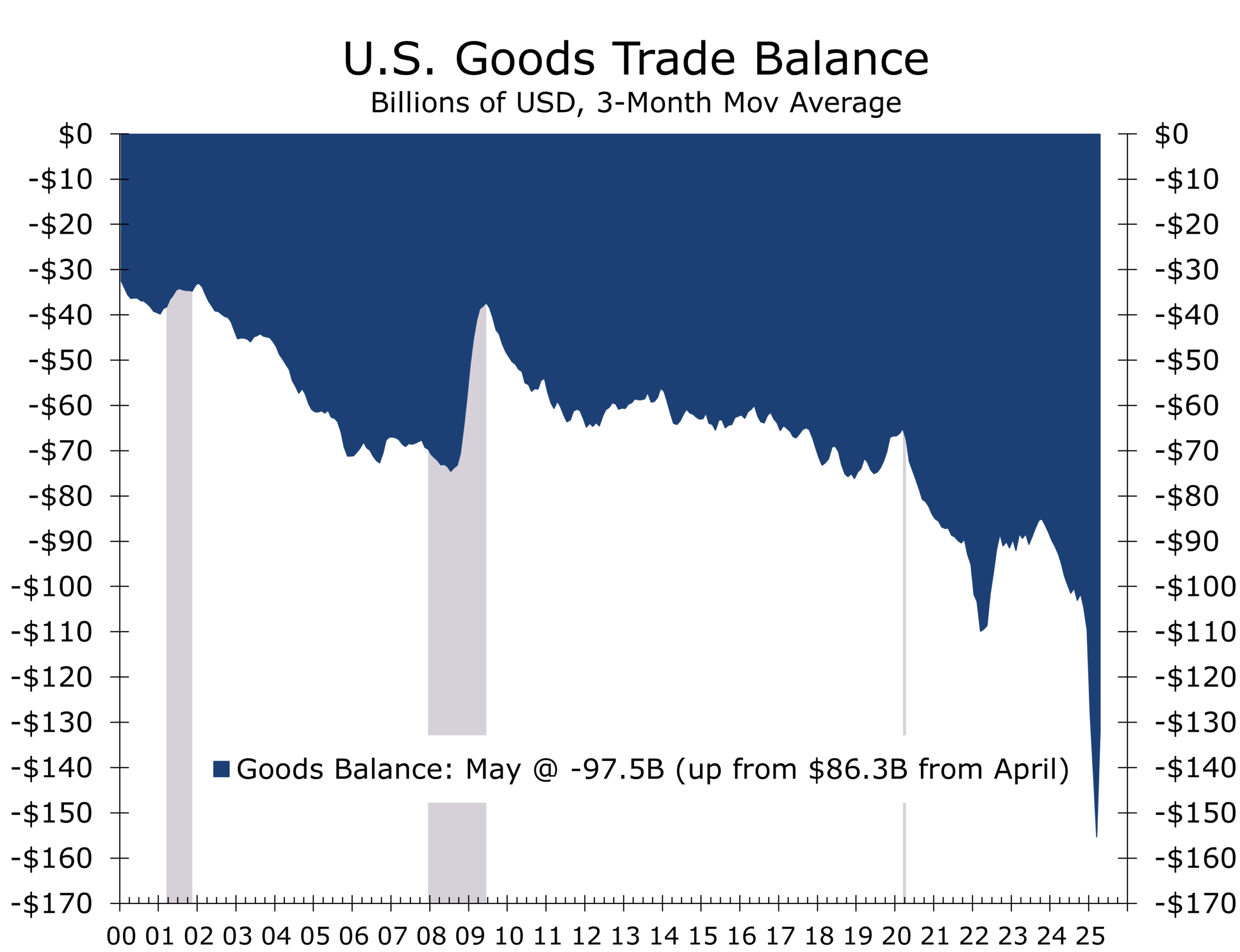 Expect a widening deficit as exports slow and pre-tariff imports remain elevated. - Wholesale Inventories (June, preliminary)