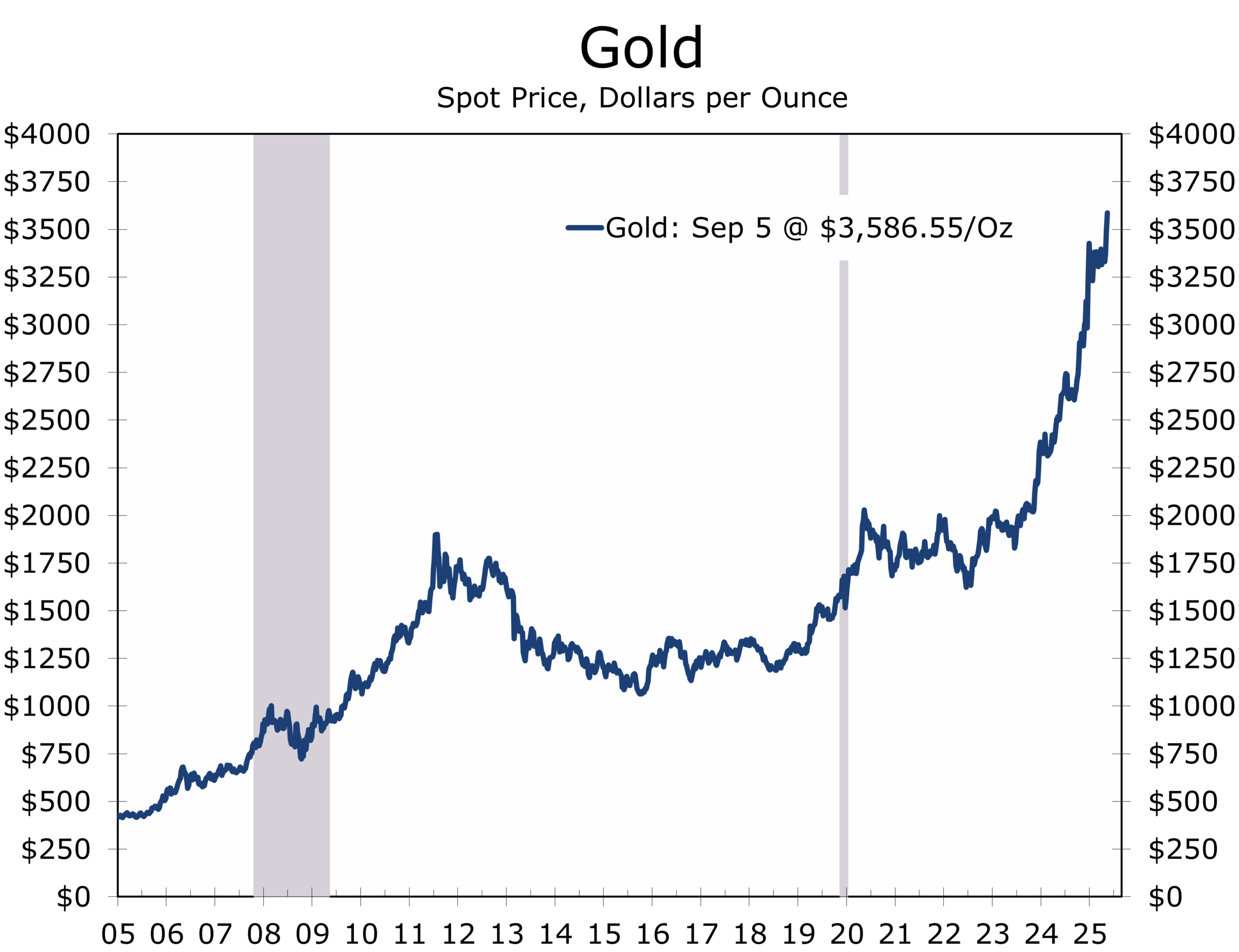 Adding to the crosscurrents, gold prices briefly soared above $3,600/oz, a record high. This reflects heightened demand for safe havens amid weakening labor data, geopolitical turbulence, and waning confidence in sovereign debt markets. Institutional investors are moving decisively into gold as confidence in long-term government papers erode.