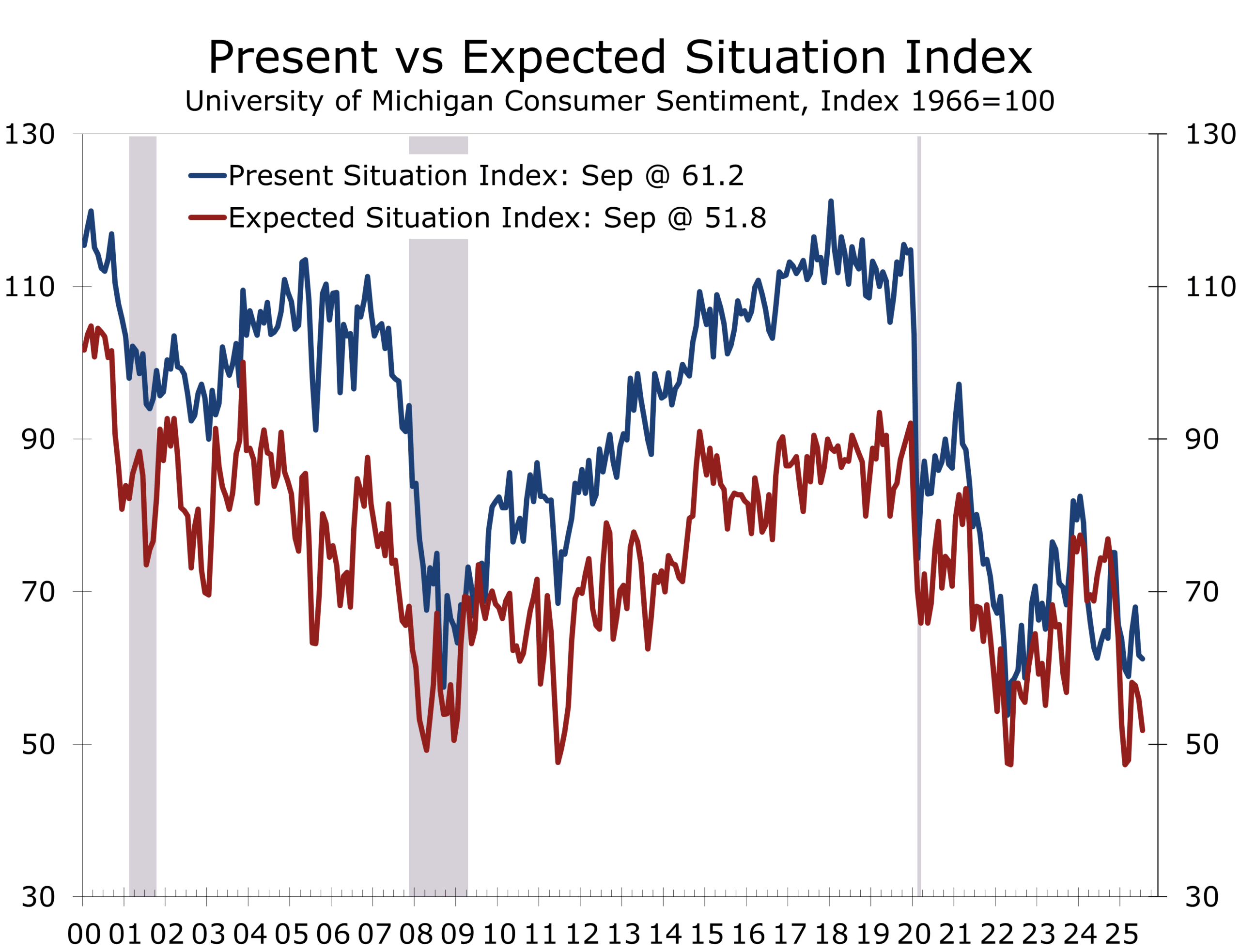- Consumer sentiment fell more than expected in September, with households increasingly concerned about jobs and tariffs.