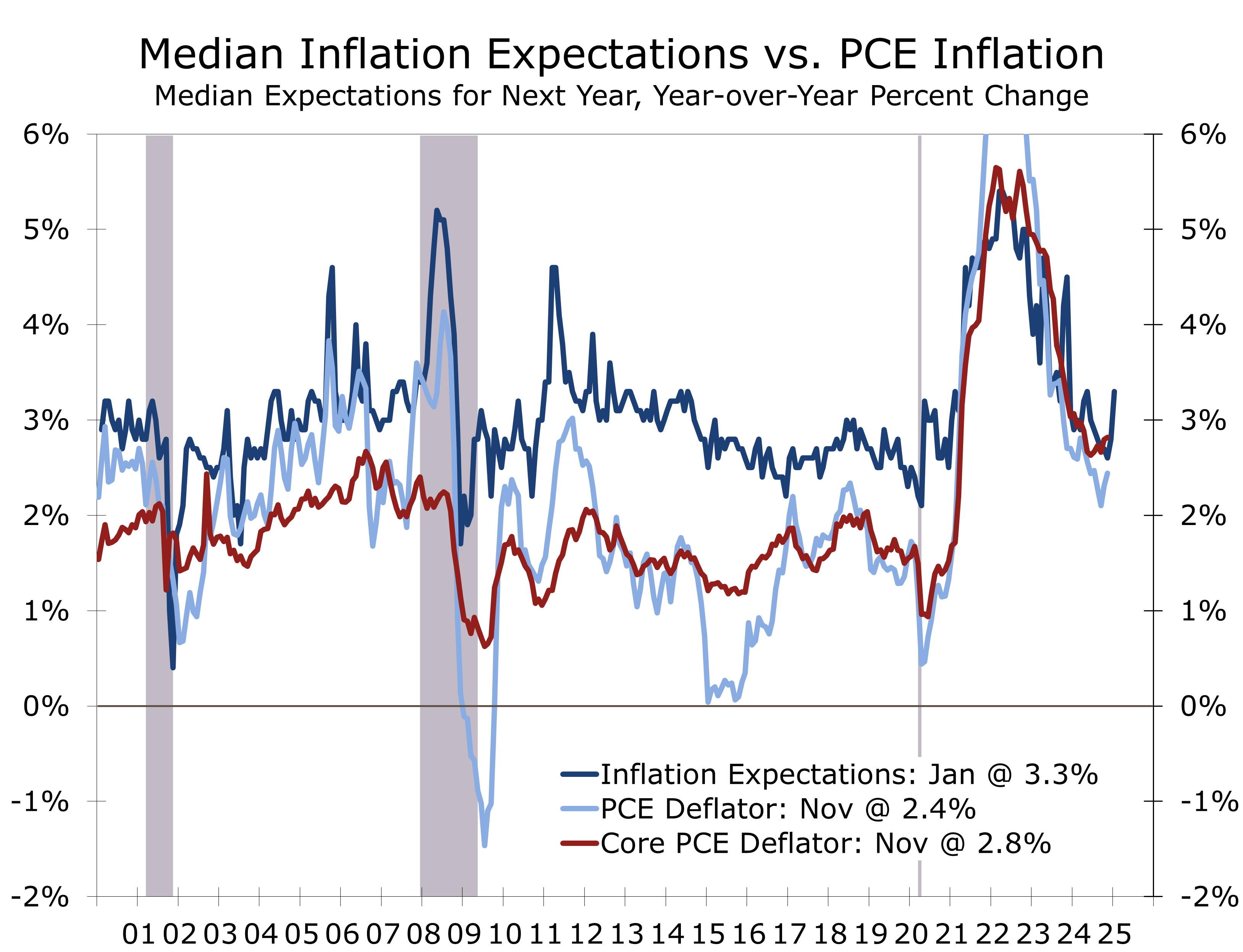 Despite the inauspicious start to the year, the economy continues to display a great deal of resilience. Early January reports show robust service sector activity, solid holiday spending, and a strong labor market, with 256,000 jobs added in December and unemployment falling to 4.1%. The Atlanta Fed GDPNow projects 2.7% Q4 GDP growth. Our own forecast for Q4 growth is a touch softer at 2.5%.