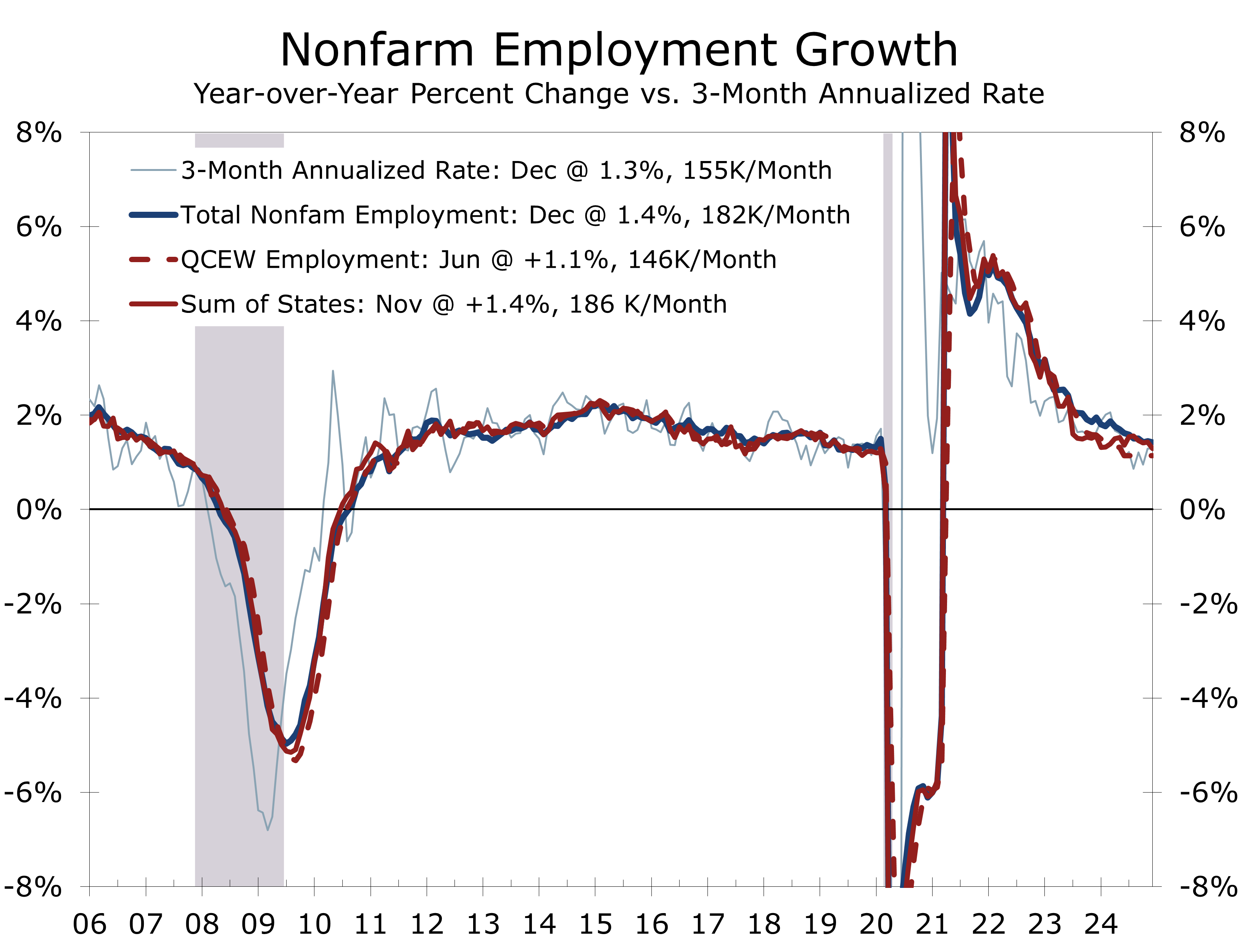 The market reacted strongly to the unexpectedly robust jobs report, with the 10-Year Treasury yield surging and expectations for a Fed rate cut pushed back to September. We believe this reaction overstates the labor market’s strength. The annual payroll employment revisions will be released with January’s employment report on February 7. We expect these revisions to show about 600,000 fewer jobs added last year than currently reported, based on QCEW and state employment data. However, the revisions primarily affect data from March 2023 to March 2024 and influence estimates for the remainder of the year. Stronger immigration this past year, including the use of temporary work visas, may lead to a smaller revision than expected. If that proves to be the case, the recent tightening in immigration suggests a lower potential growth rate moving forward.