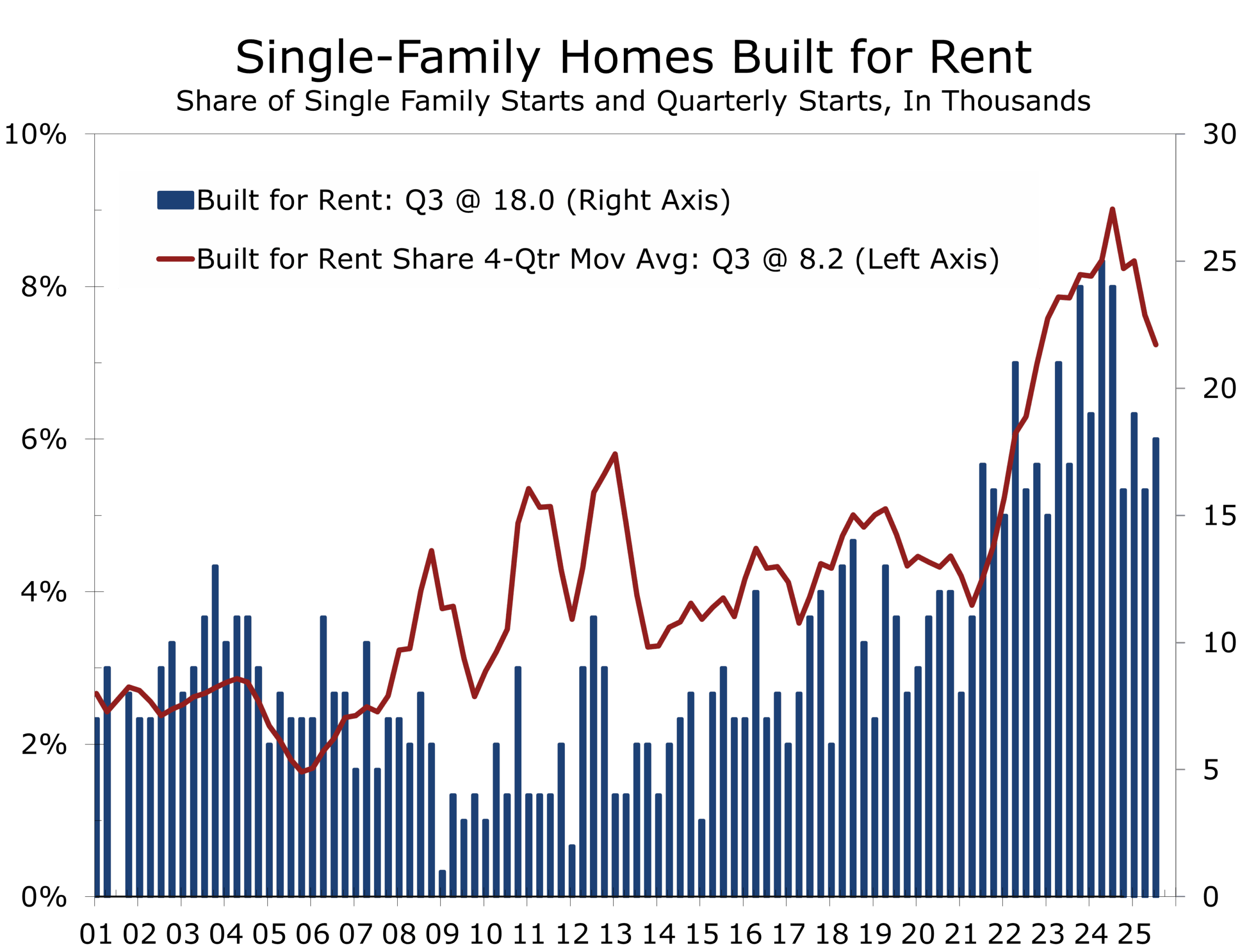 We expect an elongated housing recovery in 2026, with sales improving in the first half of the year as mortgage rates drift back toward the 6 percent range. Elevated inventories of unsold homes are likely to restrain new construction, particularly given repeated bouts of policy uncertainty that have contributed to volatility in bond markets and mortgage rates.