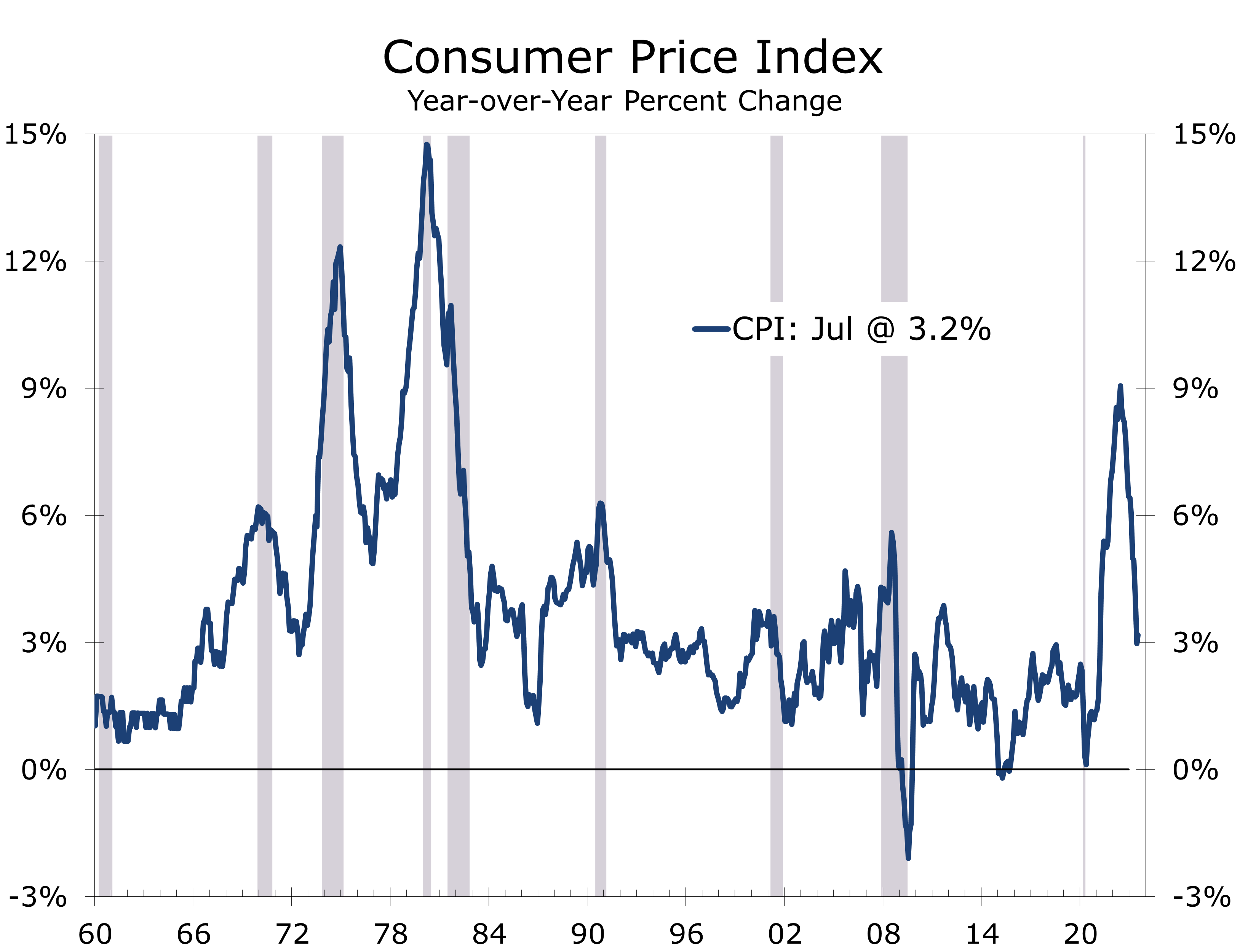 The softer employment data will allow the Fed to hold rates steady at their September FOMC meeting. The consensus view has been that the Fed would take a break from rate hikes at the September meeting and a growing proportion of forecasters now believe the Fed has finished hiking interest rates for this cycle. That could certainly be the case, but the Fed’s job will get tougher. The recent improvement in inflation, which has seen the year-to-year change in the CPI fall from 9.1% last all June to 3.2% in July, has been overstated. Overall inflation has benefitted from falling oil prices, easy year-to-year comparisons, and a whole host of special factors that have temporarily depressed seasonally adjusted prices for hotels, airfares, and medical care. Oil prices have rebounded more recently, and retail gasoline prices have been rising at a time that they normally would be falling, which will lead to some outsized gains in coming months. Moreover, the temporary seasonal factors holding back prices on airfares, hotel rooms and medical care will all reverse this fall.