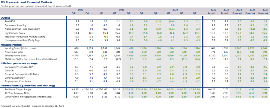 We have made some slight adjustments to our economic forecast. The most notable is we no longer have a negative quarter for real GDP in 2023. We still see a recession over the next year as more likely than a soft landing, but the odds of the latter have risen while the odds of the former have fallen. The lags between when the yield curve first inverts the onset of recession are between 12 and 18 months. A 15-month lag would put the onset of recession in October and 18 months would put the start of recession in January 2024.