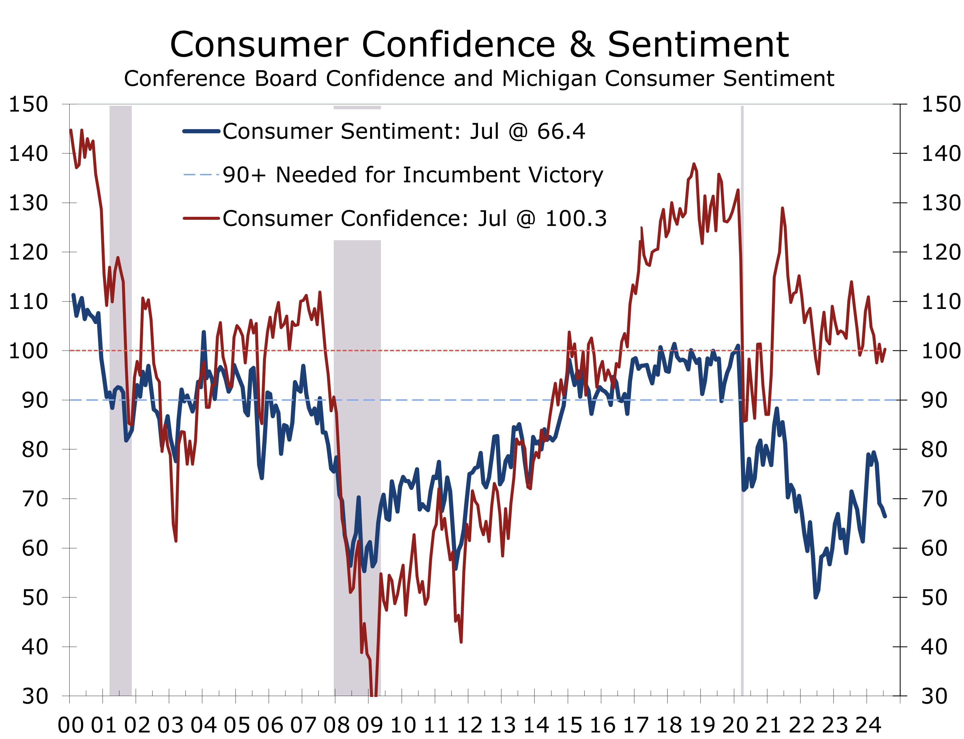- Consumer Confidence rose 2.5 points in July to 100.3, driven by a slightly more optimistic view on future economic conditions.
