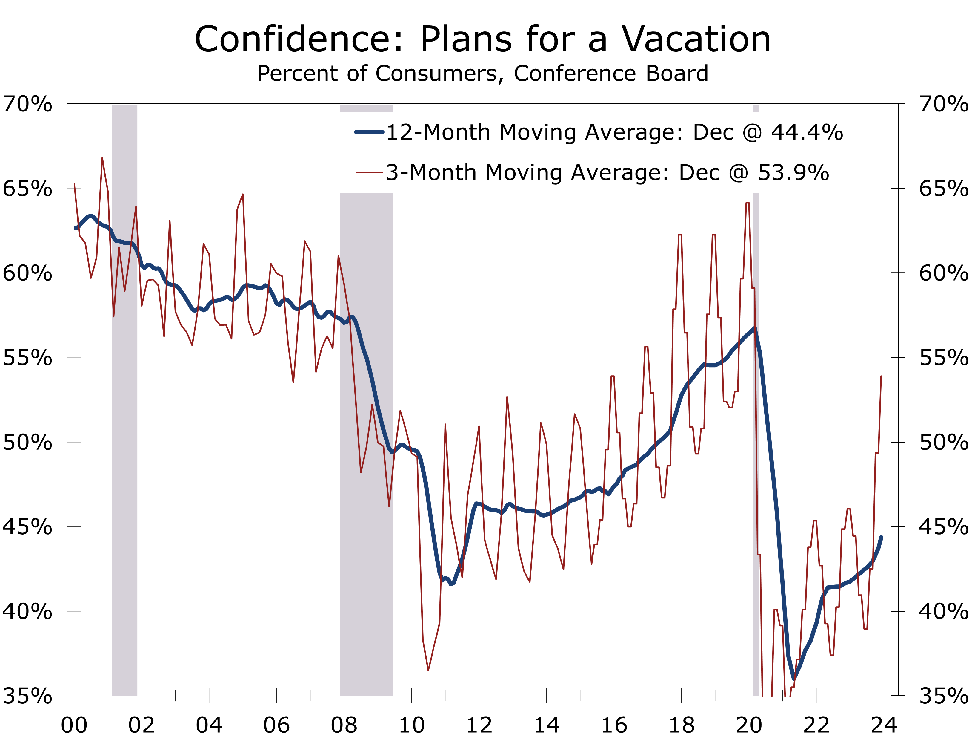• Consumer Confidence rose alongside the stock market in early December. Recession fears have subsided as lower gas prices and falling interest rates bolster hopes for a soft landing. Gains were particularly notable among lower-income households.
