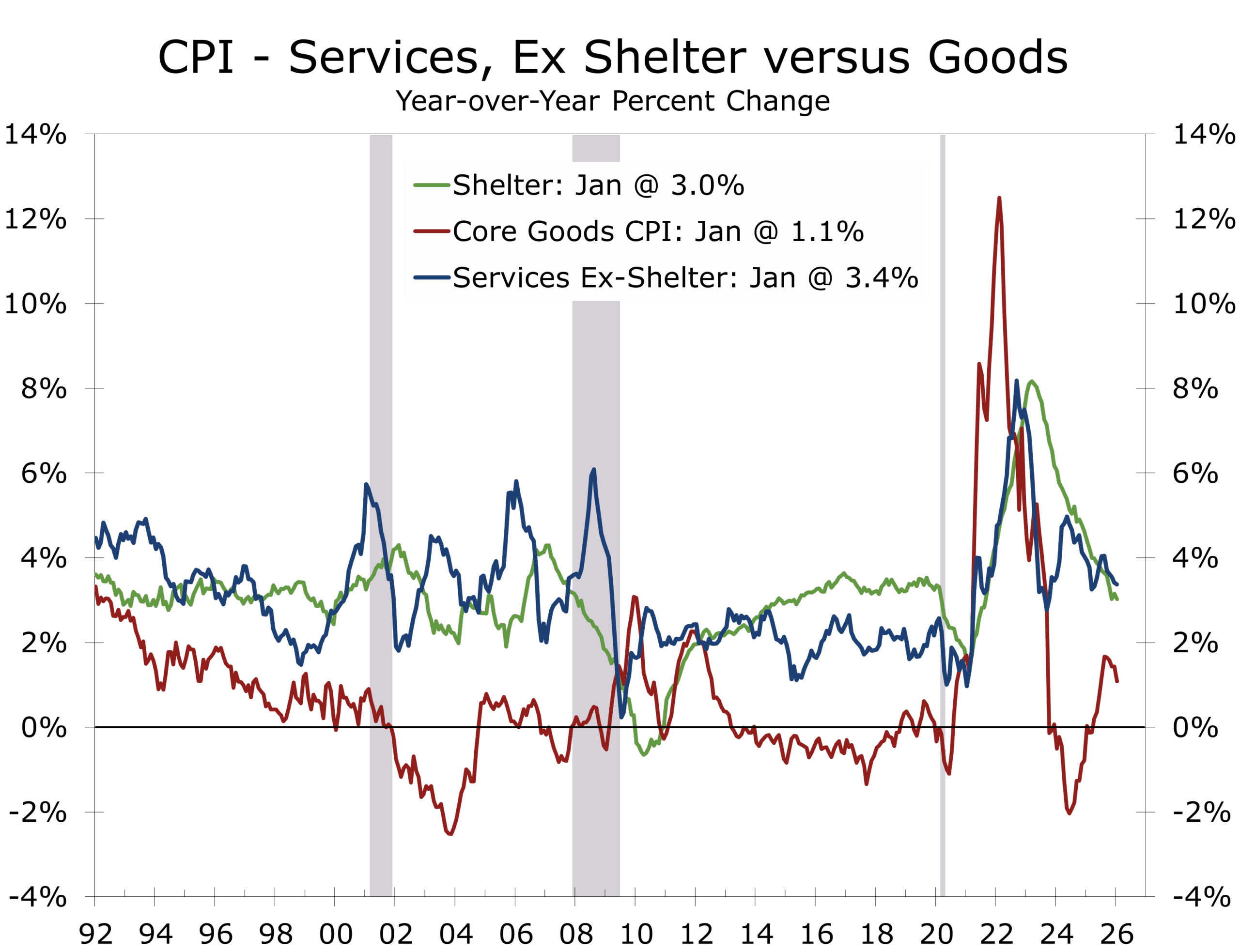 Core Inflation: Goods Soft, Services Sticky