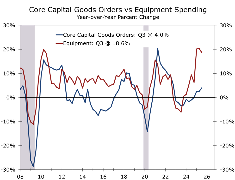 Trade data reinforce the point. Capital goods imports have been a clear outlier, supported by high-tech equipment tied to AI infrastructure and data centers, even as other import categories have softened. That divergence underscores how investment demand is being driven by structural needs rather than cyclical exuberance.