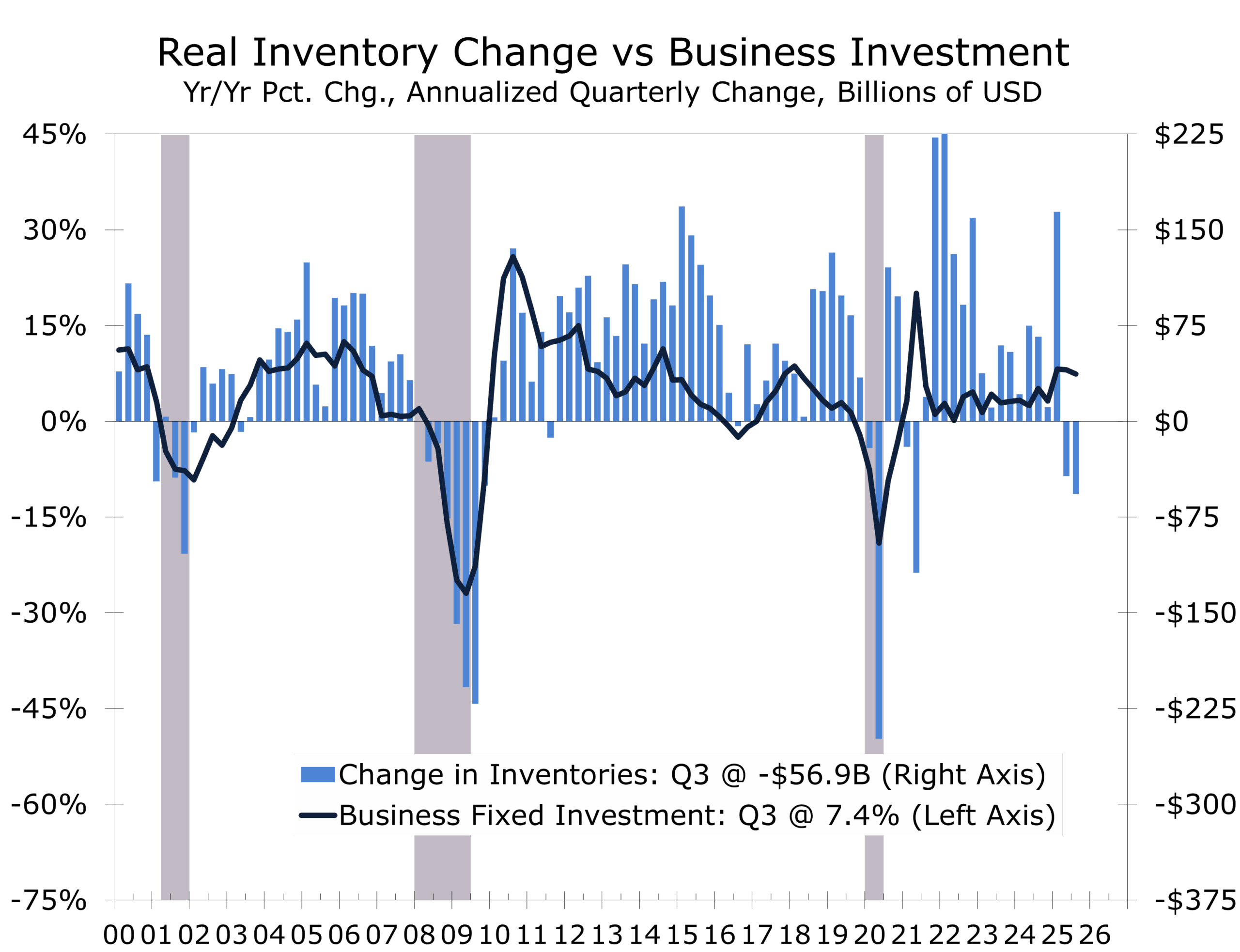 With fiscal policy setting the floor, capital investment is defining the ceiling. Business fixed investment remains the backbone of this cycle. AI infrastructure, power generation and grid upgrades, biopharma, aerospace, defense modernization, and selective reshoring are driving a multi-year capex stack that is far less sensitive to consumer sentiment than typical late-cycle investment.