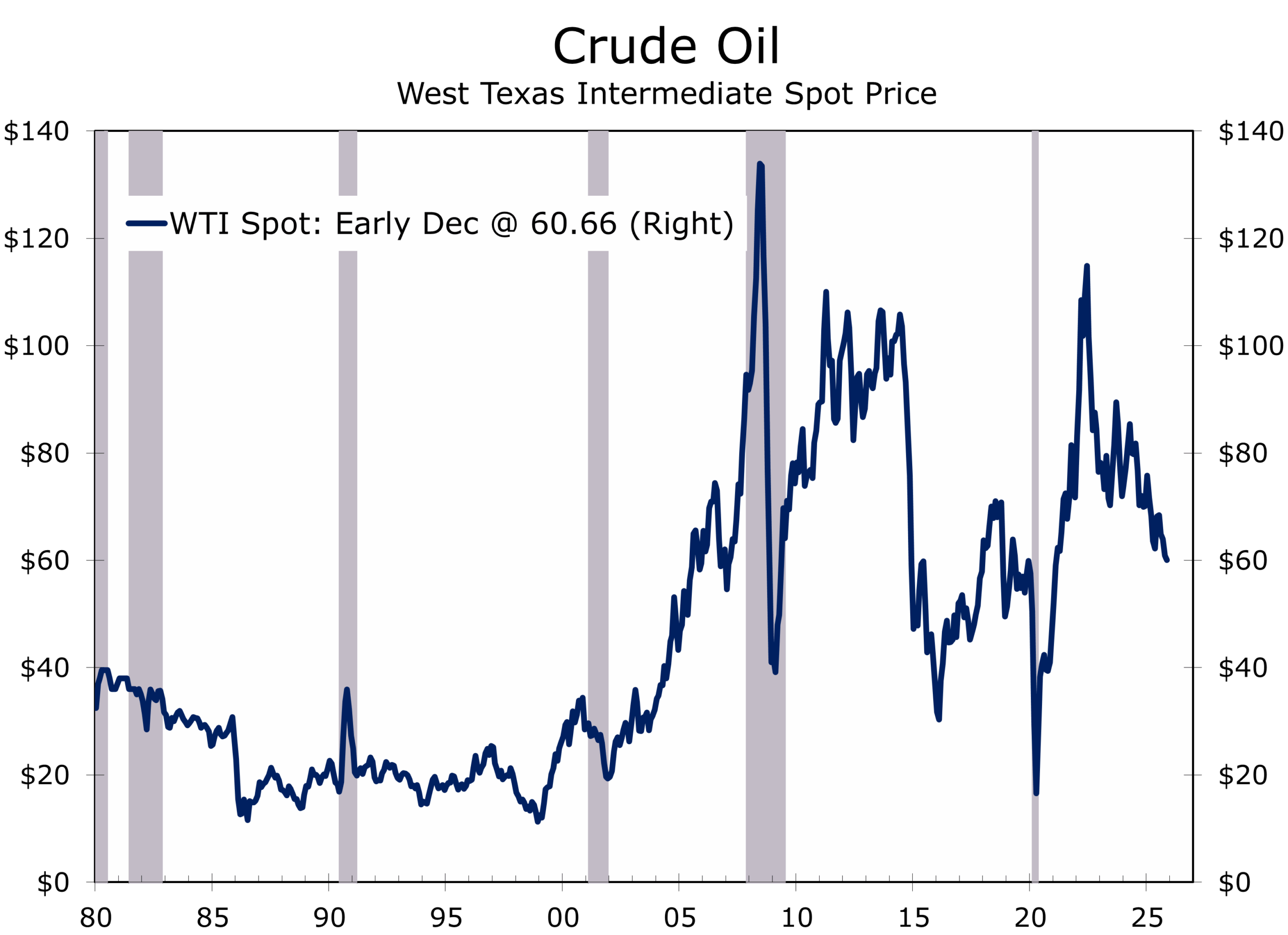 U.S.–Saudi coordination signaled a preference for maintaining higher output to pressure Russia and support broader diplomatic objectives. Oil prices softened substantially during the year—including brief dips near $60/bbl., depending on the benchmark used—though not consistently enough to verify the full thesis.