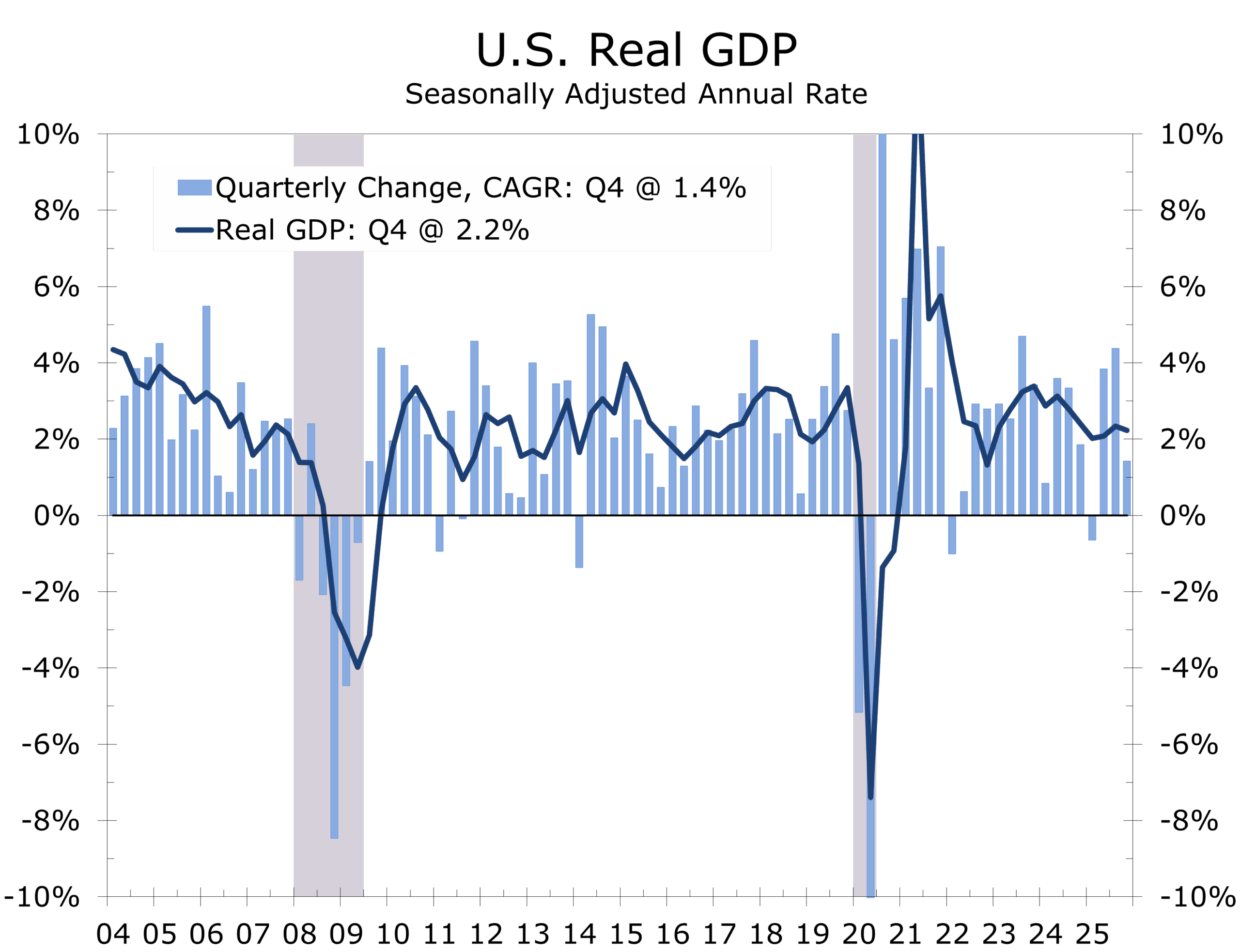 Full-year 2025, 2.2% real GDP growth marks a moderation from 2024 but remains consistent with an economy expanding within labor-force and productivity constraints.