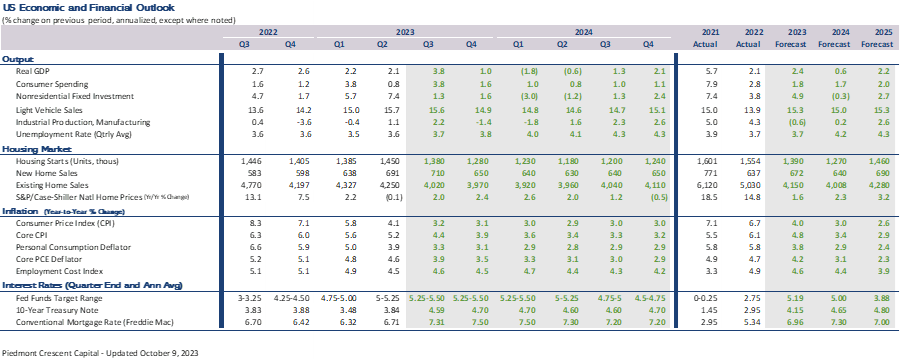 We see economic growth slowing over the next three quarters and envision a scenario somewhere between a soft landing and mild recession. Higher interest rates are having an impact on the most interest rate sensitive parts of the economy. Sales of new and existing homes are expected to decline modestly over the next 6 to 9 months, as the combination of higher prices and higher interest rates further reduces affordability. New apartment starts are expected to fall sharply, however, accounting for most of the drop in overall housing starts and apartment starts are likely to remain restrained through 2025 due to rising vacancy rates.