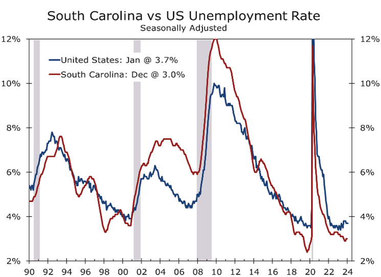 New voters might also help. South Carolina has enjoyed strong domestic in-migration in the past few years and led the nation in domestic in-migration in percentage terms this past year. In absolute numbers, 340,392 more people have moved to South Carolina over the past 5 years than moved away, with many relocating from the Northeast.