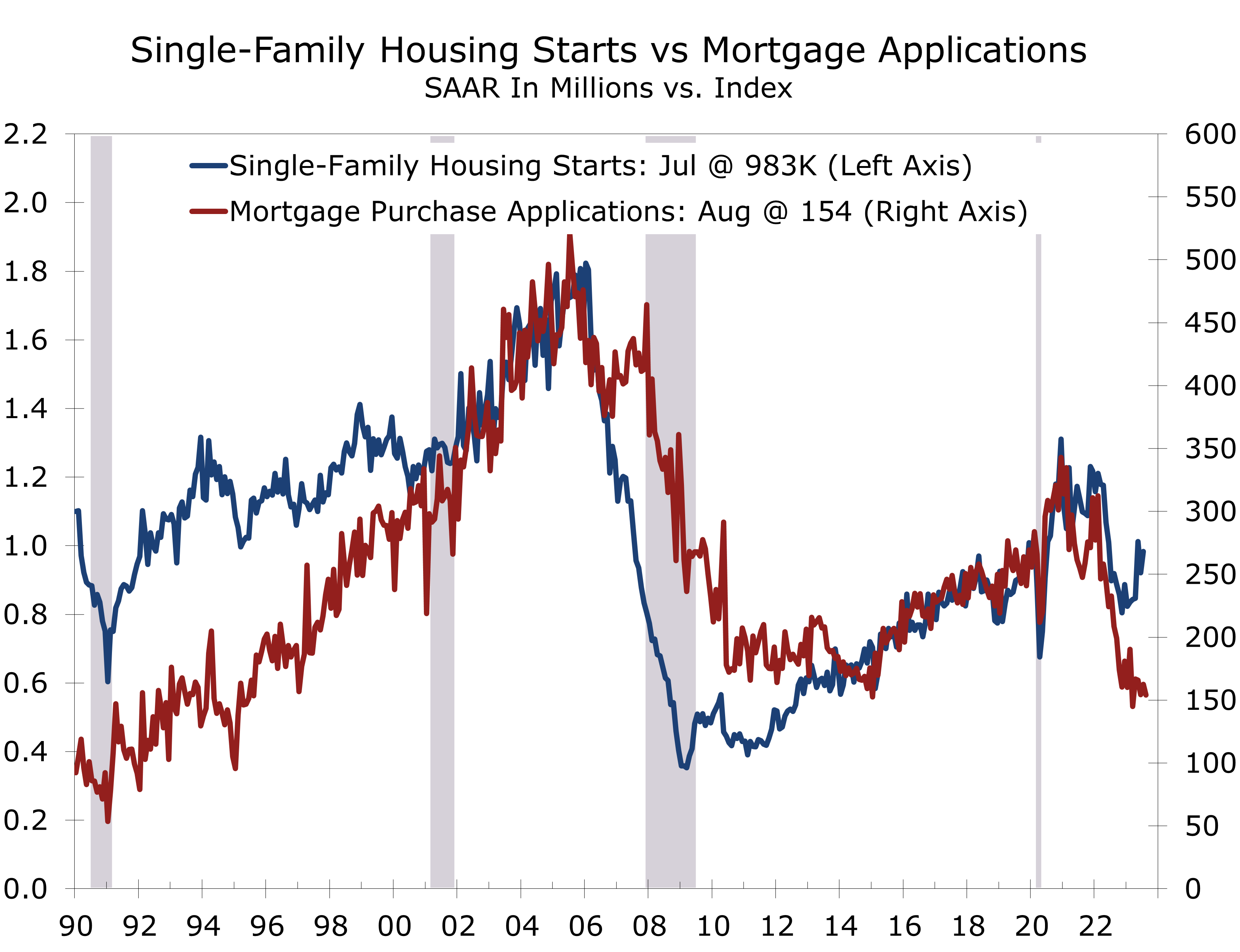 Cash buyers are also helping prop up the single-family market. Many buyers relocating from the Northeast and West Coast to the South and Midwest are able to pay cash for homes, which is one reason single-family starts have diverged from mortgage applications.