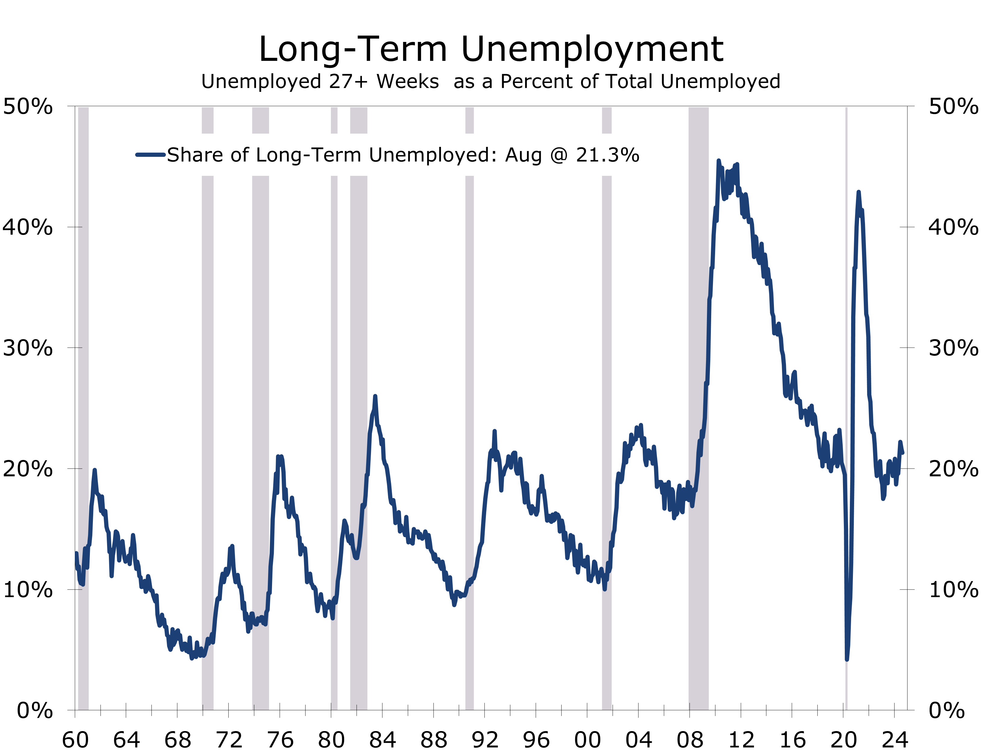 The narrowing breadth of job growth is likely pulling long-term unemployment higher.