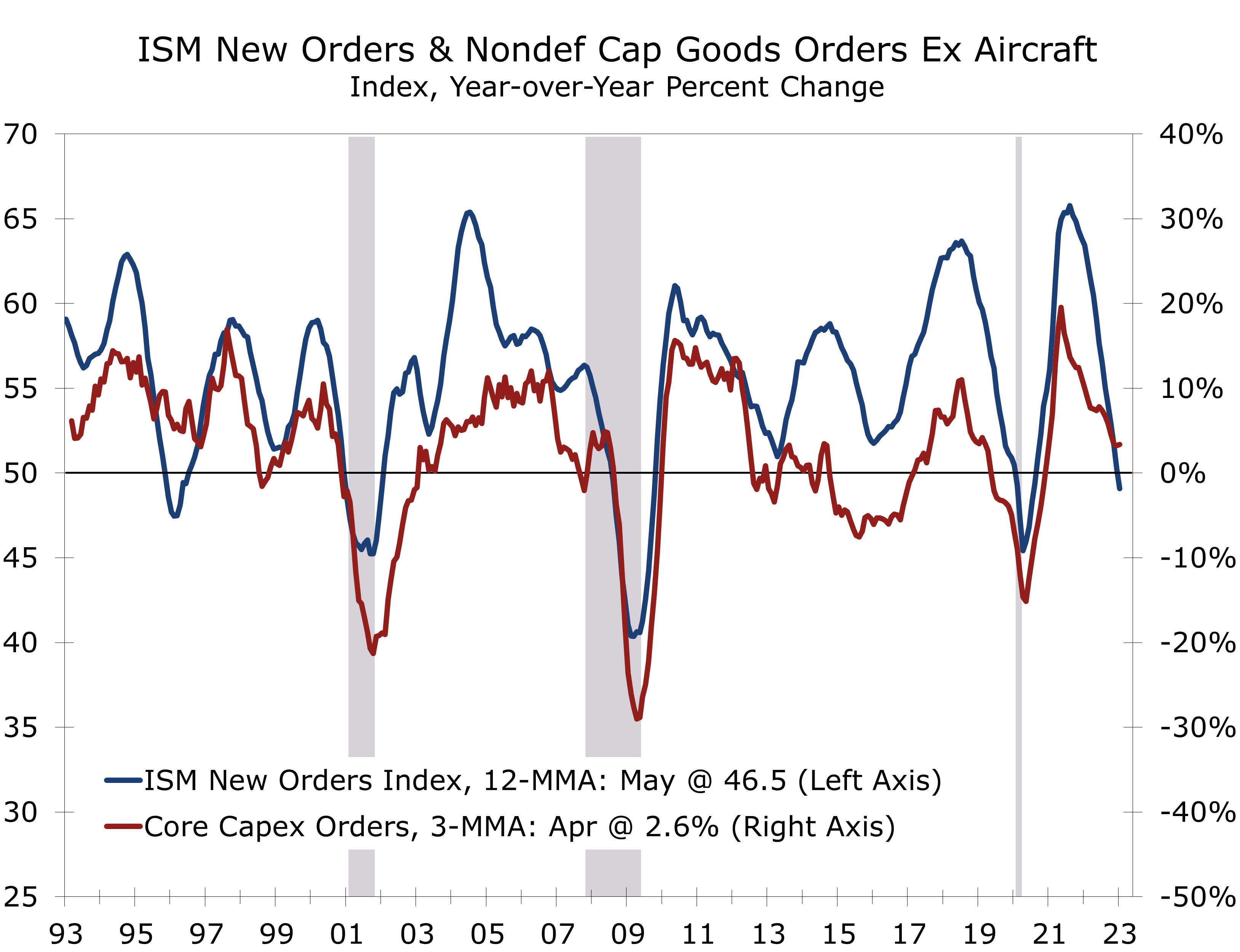 The recent slide in ISM orders suggests capex will be a drag on growth later this year.