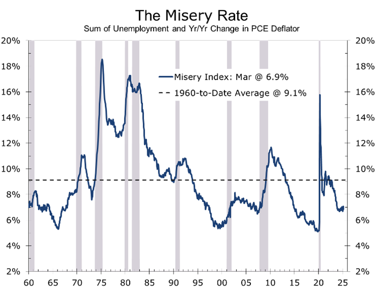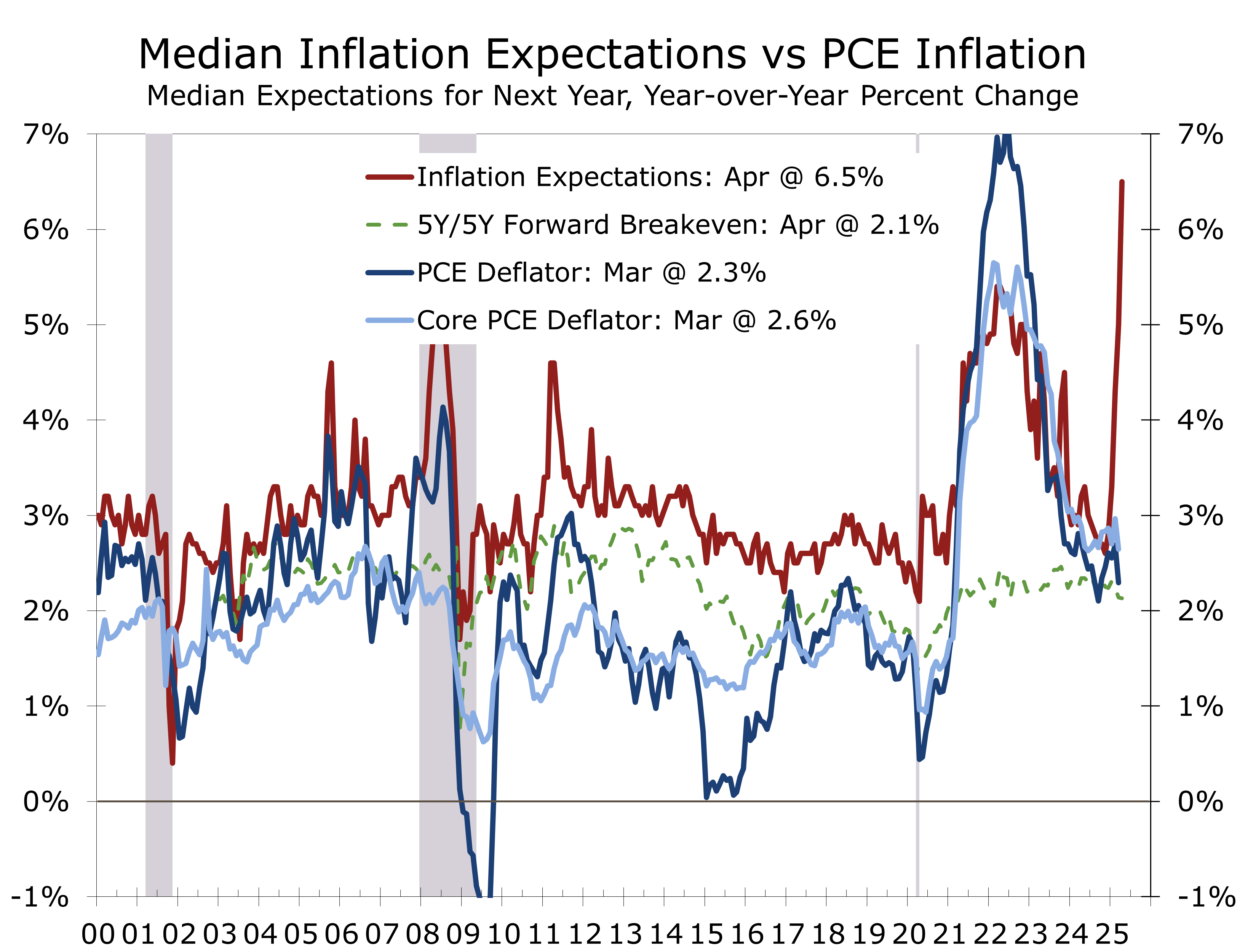 The most recent inflation data show prices pressures have moderated, with core PCE up 2.6% year-over-year in March—still above target but moving in the right direction. The impact of tariffs, however, will take time to work its way into the data. The rise in consumer expectations for inflation could become self-fulfilling if consumers rush to purchase goods ahead of tariffs or shortages. Used car prices have already risen sharply.