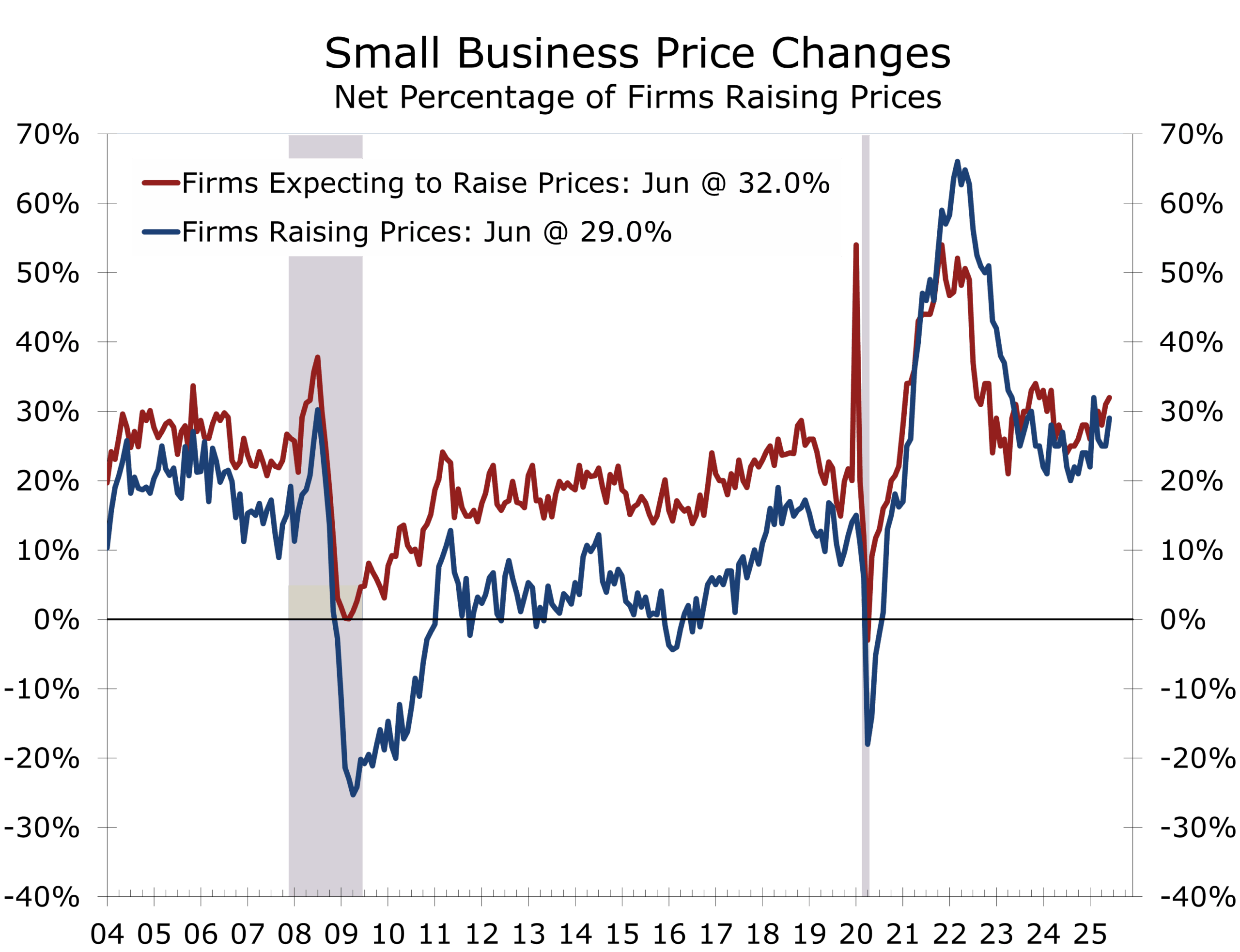 NFIB’s June survey highlights a growing disconnect between steady headline optimism and mounting operational headwinds. High borrowing costs and soft demand are curbing hiring and investment. While the new tax law may boost sentiment later this year, most owners remain defensive, prioritizing margin preservation over growth. A rate cut may be necessary for the tax stimulus to gain traction.