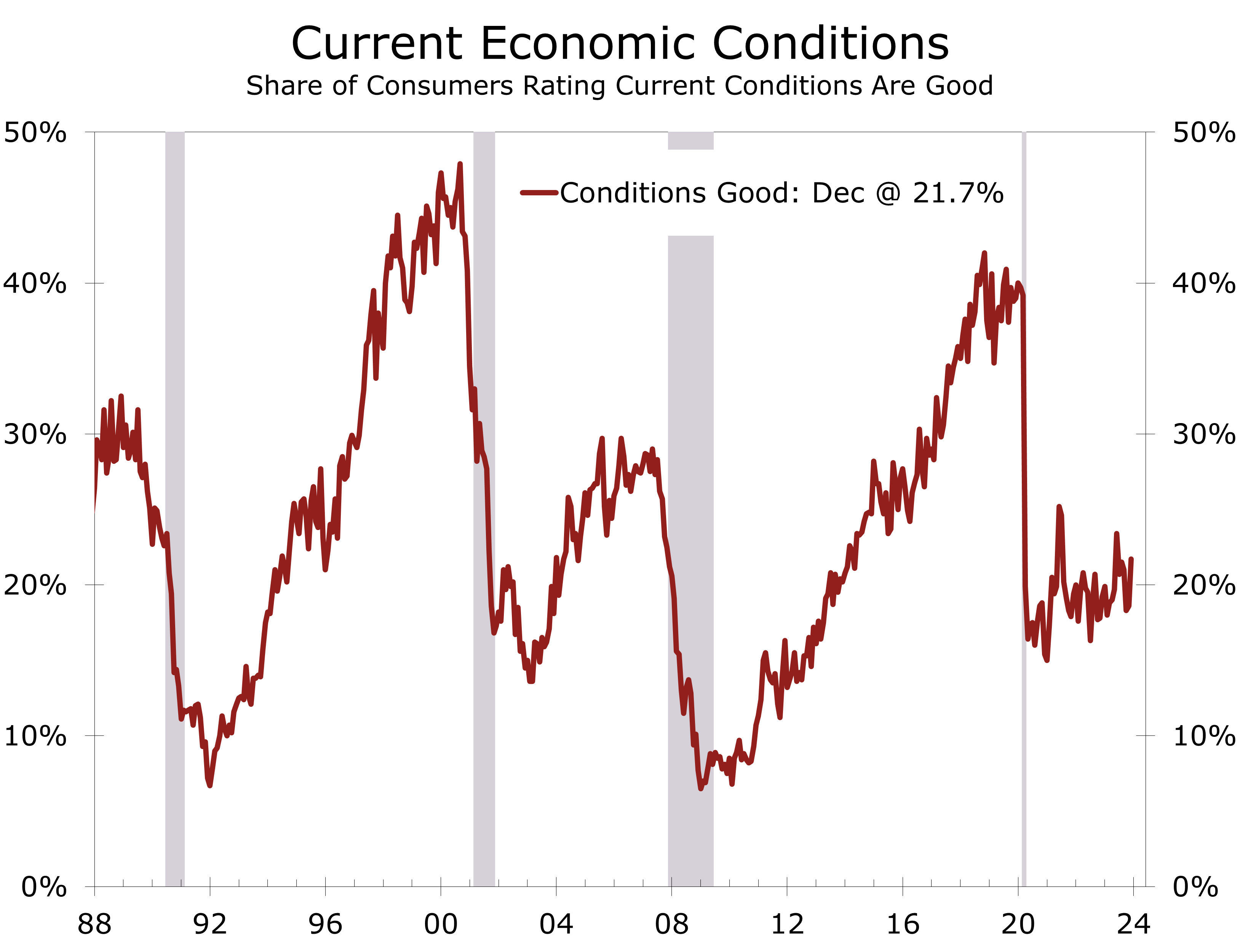 other issues. Of course, inflation spiked following the pandemic, and while it has been moderating recently, prices for groceries, housing, entertainment, and travel remain well above pre-pandemic levels. This may explain why such a small share of consumers currently rank current economic conditions as good.