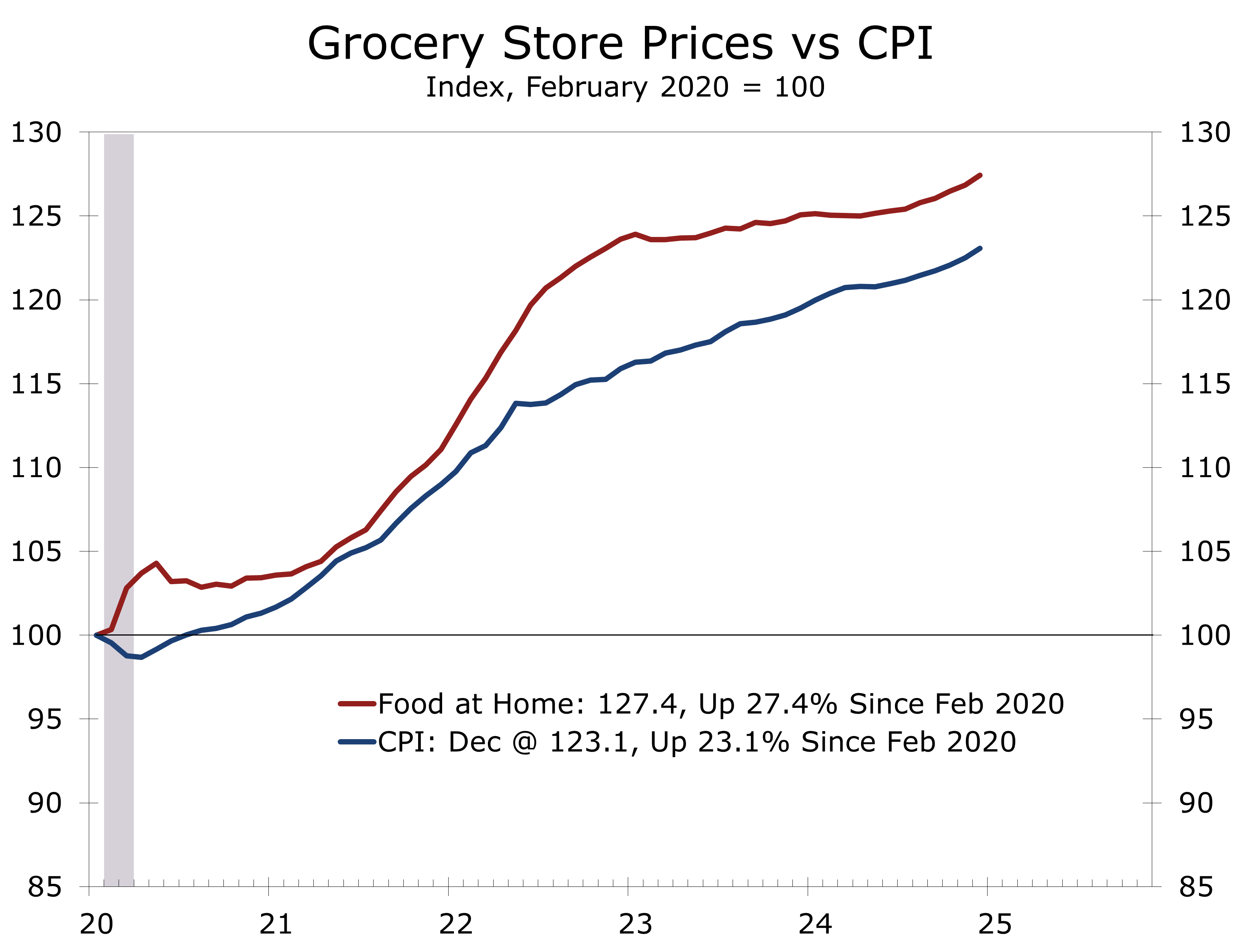 - Egg prices surged 15.2% in January, up 53.0% year-over-year, contributing to two-thirds of the 0.5% increase in grocery prices.