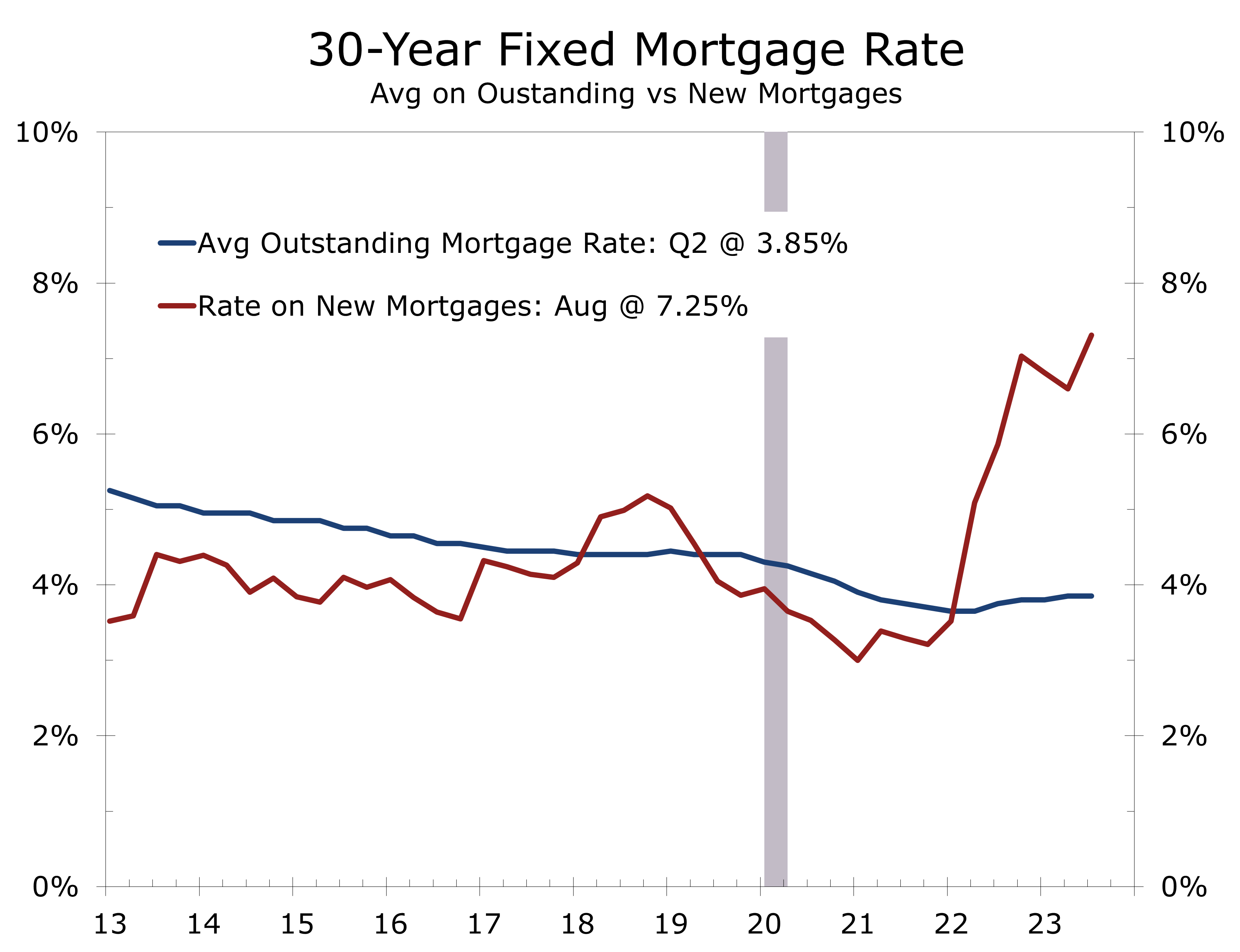 July’s rise in new home sales confirms that demand remains strong despite higher mortgage rates. Demand for new homes is being bolstered by buyers shifting away from the existing home market, where inventories remain scarce. Fewer homeowners are willing to sell today because they do not want to lose their current low-rate mortgage. Eighty percent of existing mortgages have an interest rate below 4%.